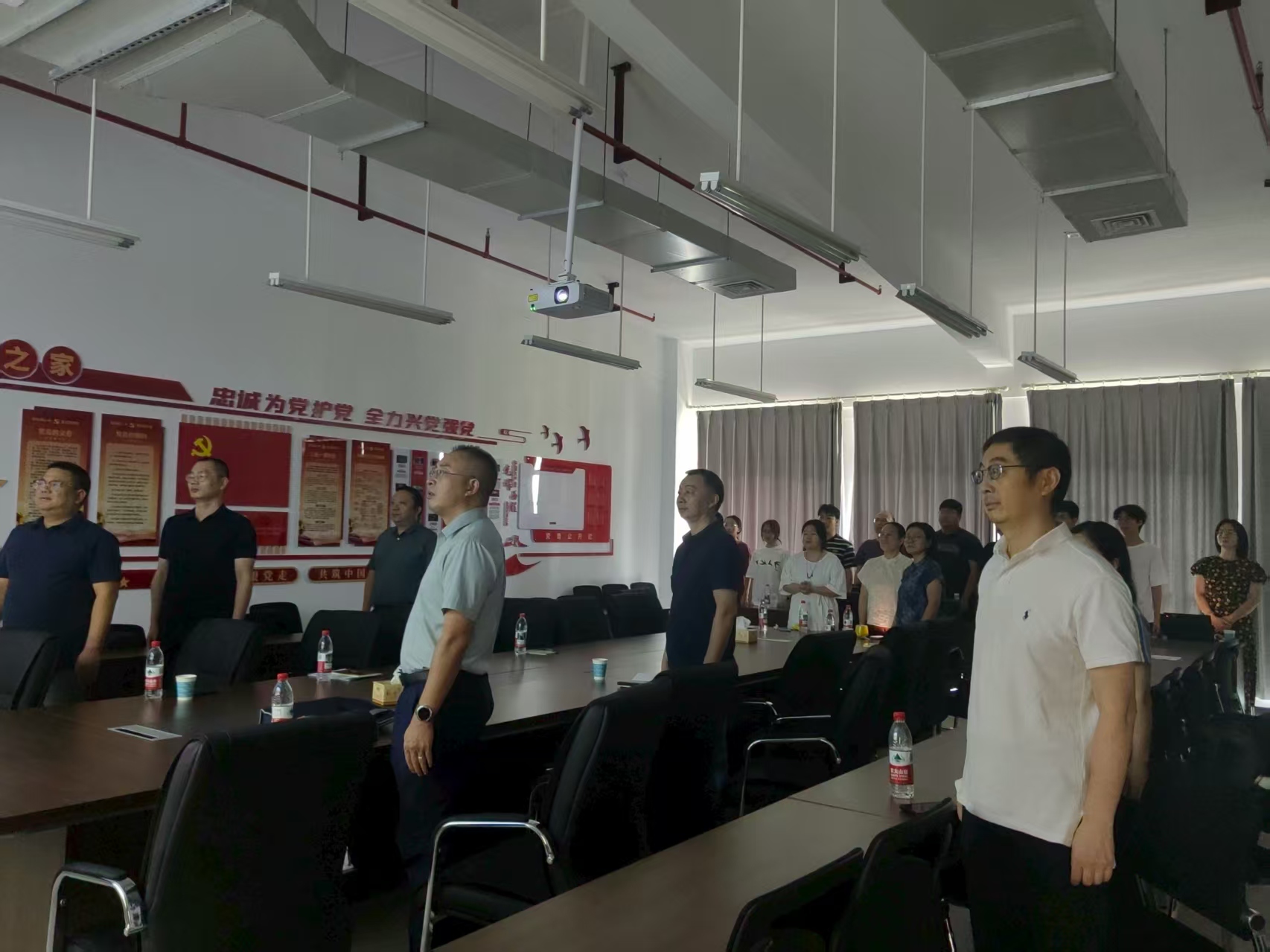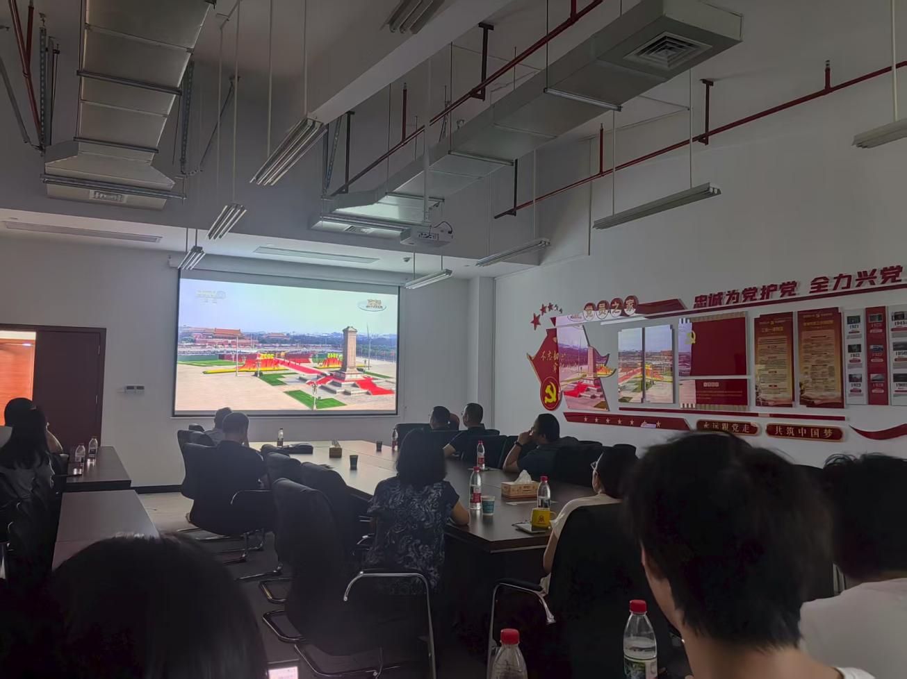 上午9时,纪念大会正式开始。全体肃立,80响礼炮震彻云霄。在雄壮的国歌声中,鲜艳夺目的五星红旗冉冉升起,公司师生们全体起立,面向屏幕中的国旗行注目礼,心中充满了自豪与敬意。